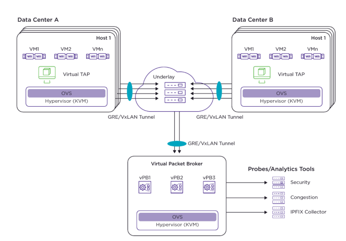 Our vPB and vTAP eliminate typical long deployment cycles associated with hardware through automated scale orchestration and simplified provisioning. They allow dynamic modification of flow-definitions and traffic optimization functions in the network visibility infrastructure when changes occur in the production network (such as the addition or removal of VMs, variations in traffic volume, and new flow patterns). This capability improves monitoring productivity and offers greater network agility. Our vPB is designed to also mask patterns in specific packets to protect sensitive information from unauthorised usage.